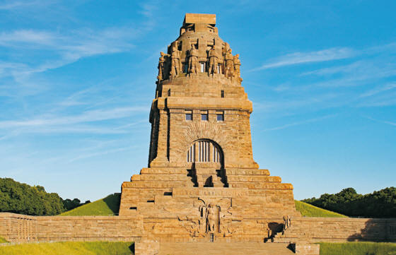 das Völkerschlachtdenkmal, ein 91 m hoher Granitkoloss.