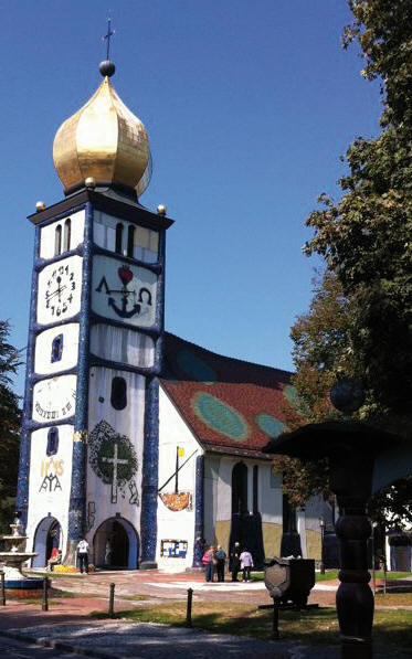Hundertwasser-Kirche in Bärnbach. Weiterfahrt entlang