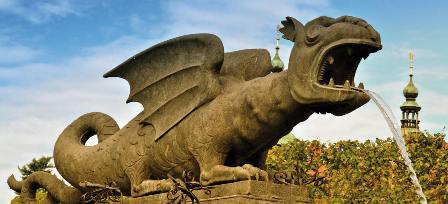 den Neuen Platz mit dem Lindwurmbrunnen und besichtigen