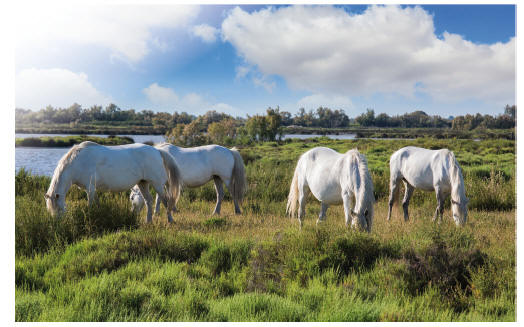 Naturschutzgebiet der Camargue mit wilden Stieren,