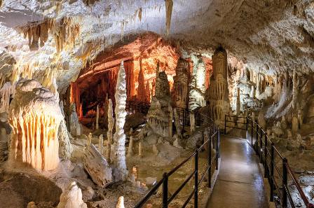 der Tropfsteine. Ein bequemer Fußweg führt durch das