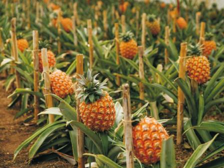 Sie in den Gewächshäusern einer Ananasplantage vieles über die aufwendigen