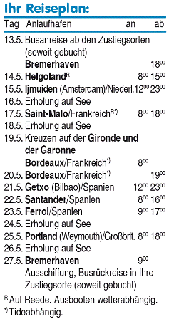 Für die Kreuzfahrt gelten die Reisebedingungen des Veranstalters Phoenix-Reisen.